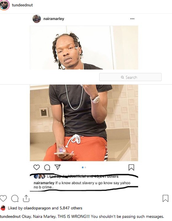 The controversial Tunde Ednut in a new post on IG has slammed Naira Maley for his public support of internet fraudster.