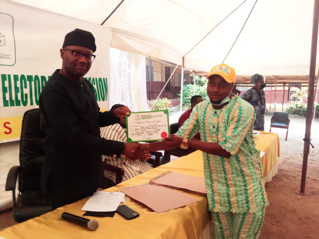 The councilor-elect while receiving the certificate from the state Chairman, Mr. Babatunde Osibodu at the Commission’s Headquarters, Oke-Ilewo, Abeokuta said that he will not disappoint his constituents, adding that he will empower people and carry out useful projects.